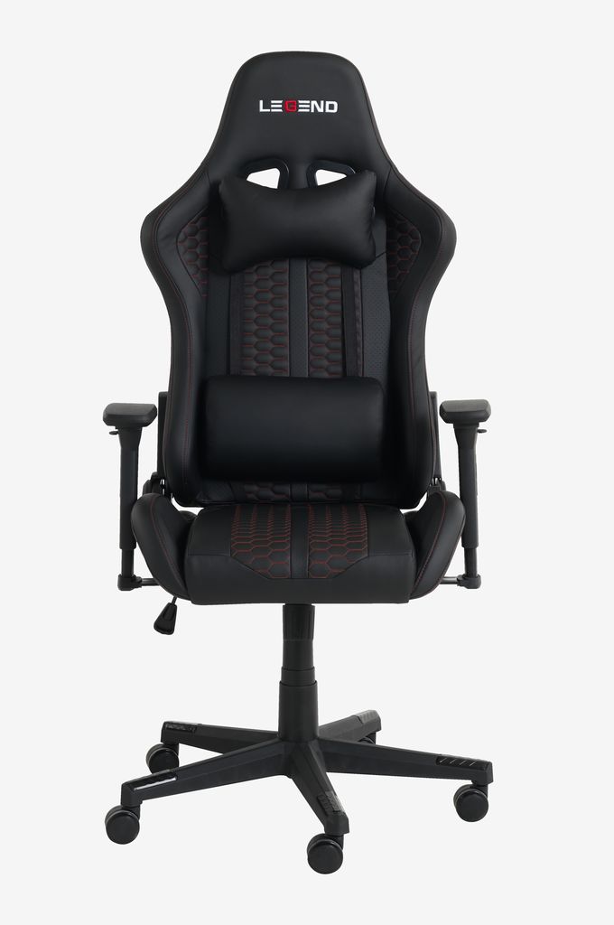 La chaise gamer NIBE de LEGEND allie confort ajustable et style, pour que vous puissiez jouer en toute confiance. Les coussins inclus offrent un soutien confortable à la nuque et aux lombaires. Les accoudoirs et le dossier sont réglables en fonction de vos besoins. Le siège est recouvert en similicuir noir avec des surpiqûres rouges dans un motif graphique. l70 x H126-136 x P70 cm