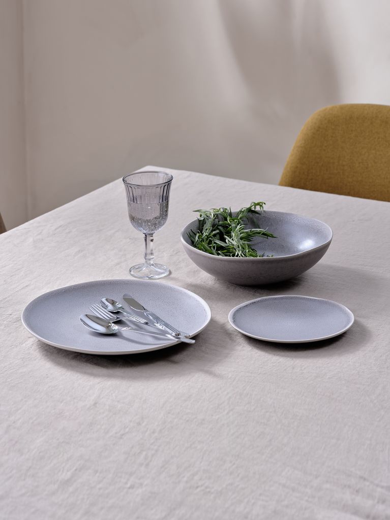 Assiette en céramiques gris clair. L'émail réactif donne à chaque produit un aspect différent. L'assiette est doublement émaillée, ce qui la rend très résistante et prévient les rayures causées par les couverts. Résistant au lave-vaisselle. Ø18 x H1,6 cm