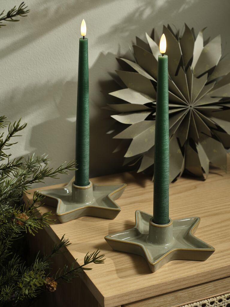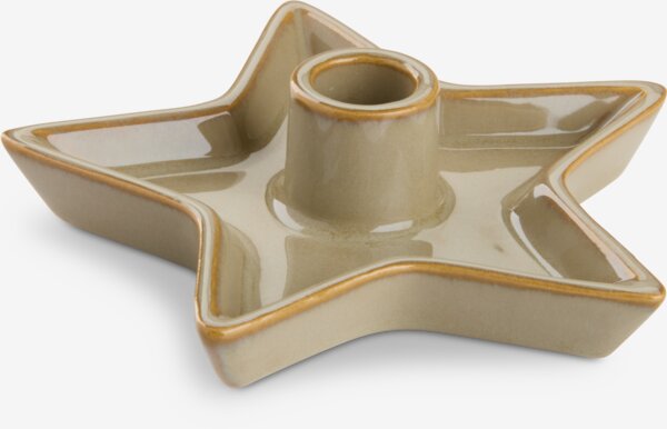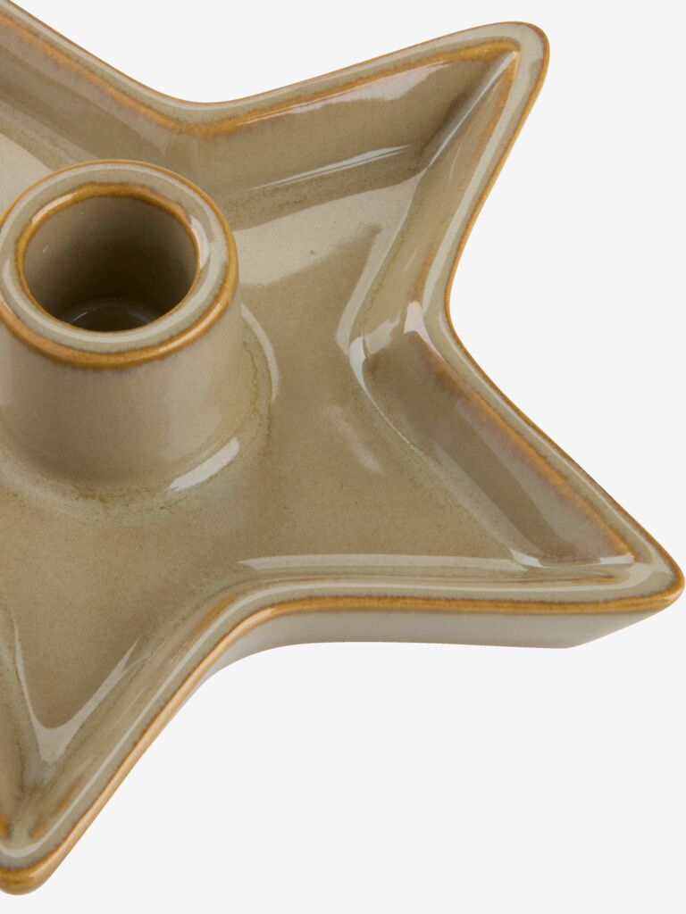 Bougeoir vert clair en grès en forme d'étoile. Son design simple est idéal pour ajouter une touche festive à toute décoration de fêtes. Ø15 x H4 cm