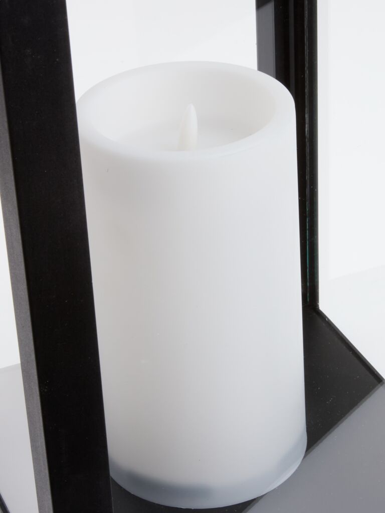 Lanterne au design noir classique avec une lumière LED qui crée une atmosphère chaleureuse et cosy. Elle dispose d'une fonction minuterie pratique qui l'allume pendant 8 heures et l'éteint pendant 16 heures. Nécessite 3 piles AA (non incluses). l20 x L20 x H40 cm