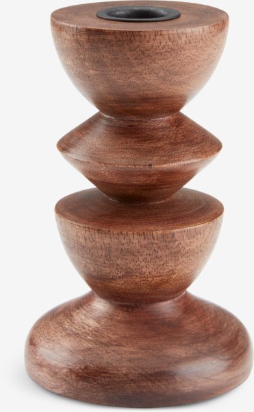 Chandelier brun en bois de manguier avec un design sculpté unique. Ø9 x H14 cm