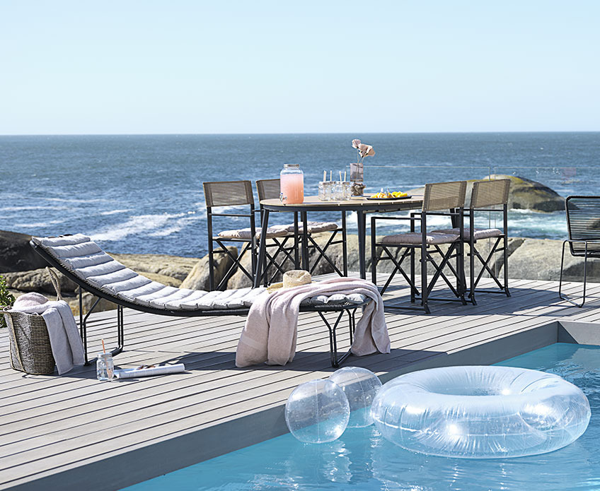 Pour installer votre coin lounge au bord de la piscine, vous avez besoin d’un mobilier facile à nettoyer et à entretenir. L'eau salée ou l'eau chlorée, le soleil, le vent et la pluie peuvent faire endommager vos meubles de jardin. Choisissez un ensemble facile à nettoyer, et effectuez un entretien régulier environ 2 fois par an.