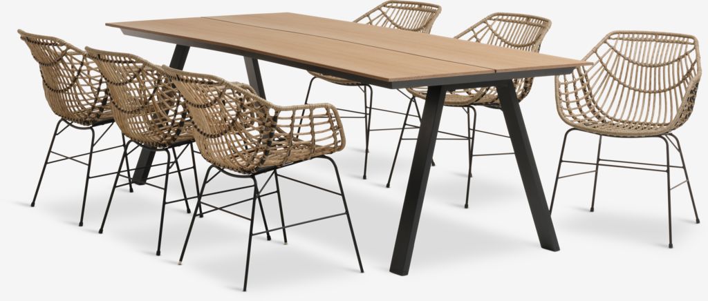 FAUSING L220 table + 4 ILDERHUSE chaises naturel
