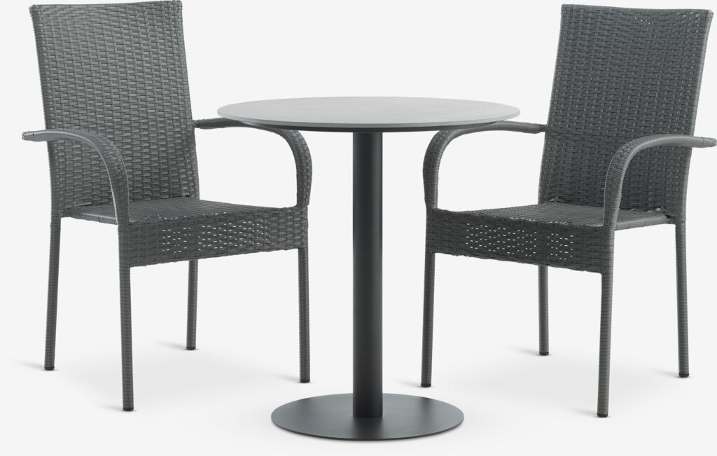 VAMDRUP + GUDHJEMVAMDRUP Ø70 table + 2 GUDHJEM chaises gris