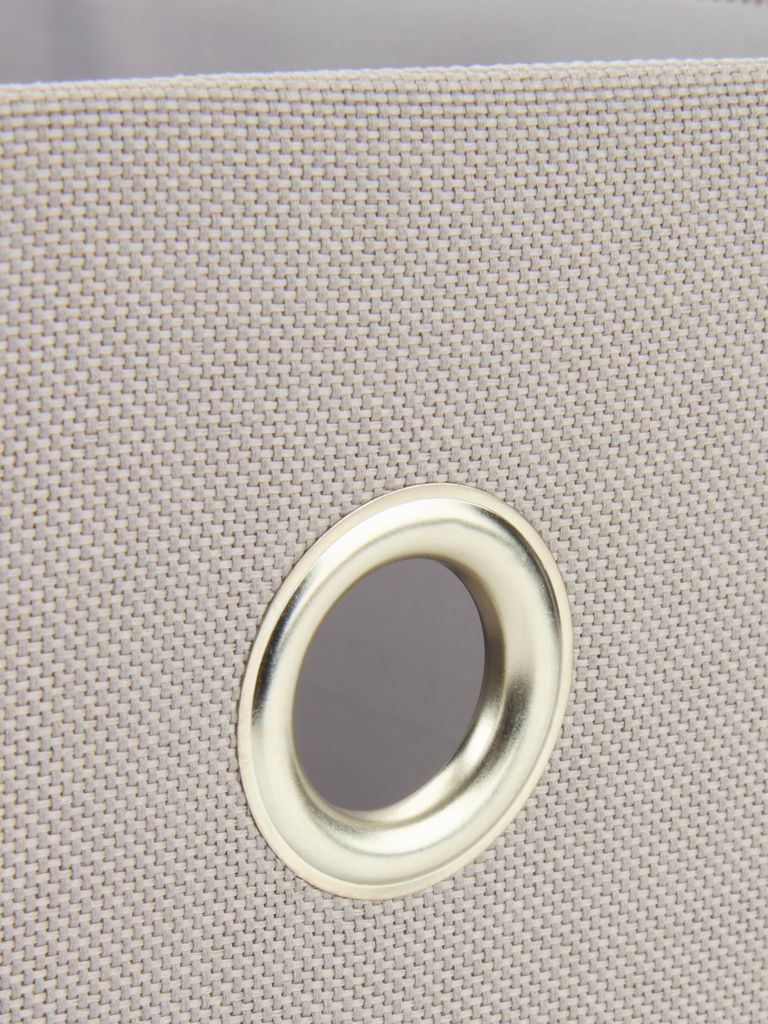 Panier en tissu gris avec un design stable et spacieux, idéal pour ranger toutes sortes de choses à la maison ou au bureau. Il s'adapte bien sur les étagères ou dans les placards et possède une poignée en acier pour un accès facile. l20 x L25 x H16 cm