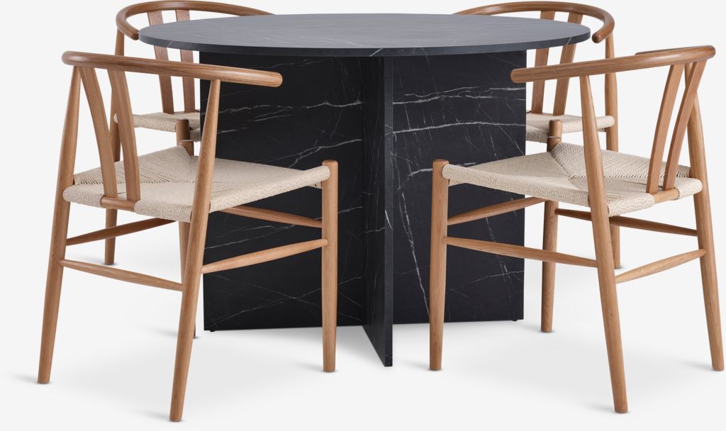 KRONDAL + GUDERUPKRONDAL Ø110 table marbre + 4 GUDERUP chêne/naturel
