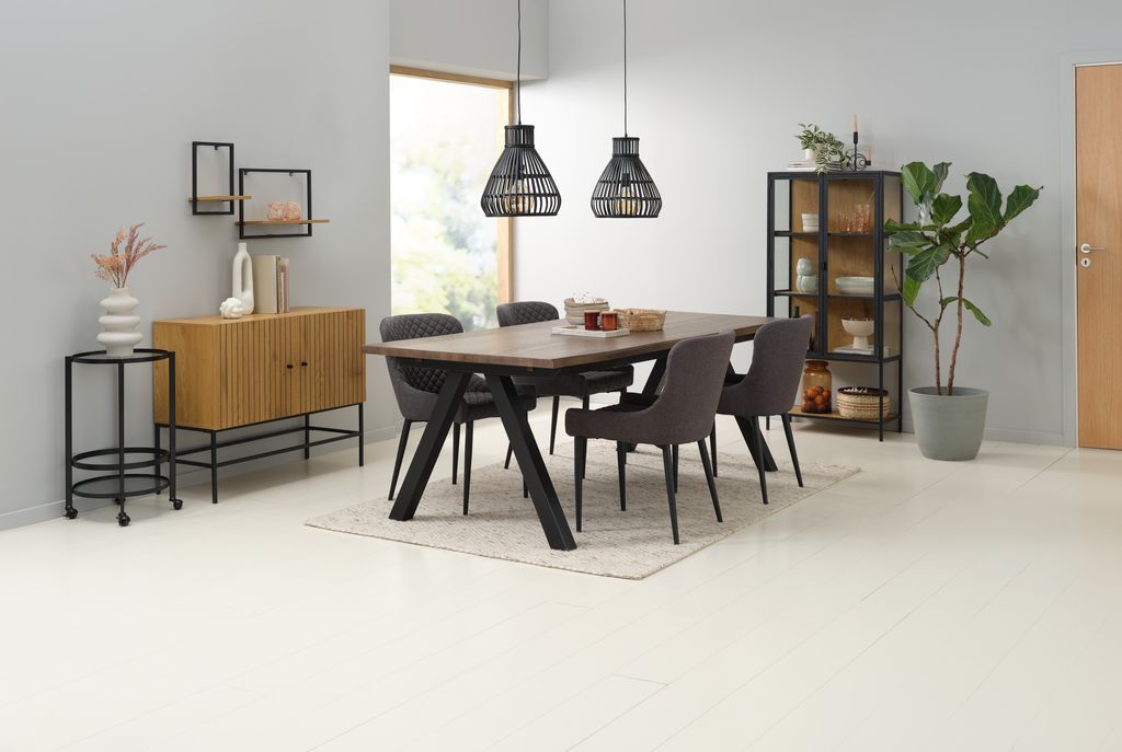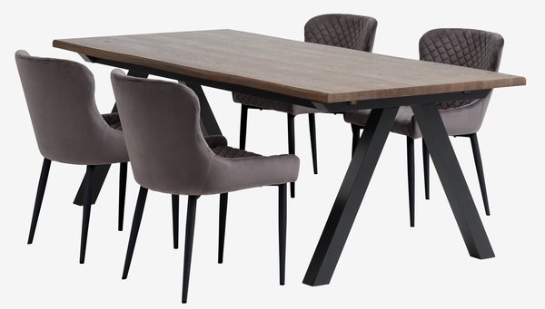 SANDBY + PEBRINGESANDBY L210 table chêne foncé + 4 PEBRINGE gris/noir
