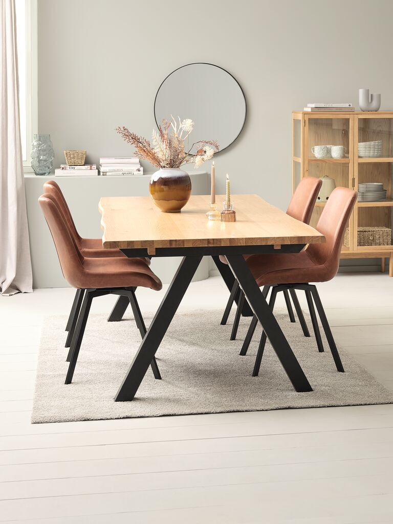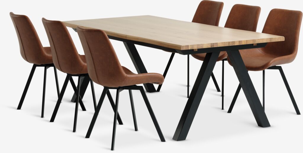 SANDBY L210 table chêne naturel + 4 HYGUM chaises cognac